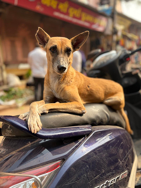 This fellow at Varanasi already sterilized (see ear notch on left which shows that) is ready for a nice ride! Photo credit: Ritika of Varanasi for Animals.